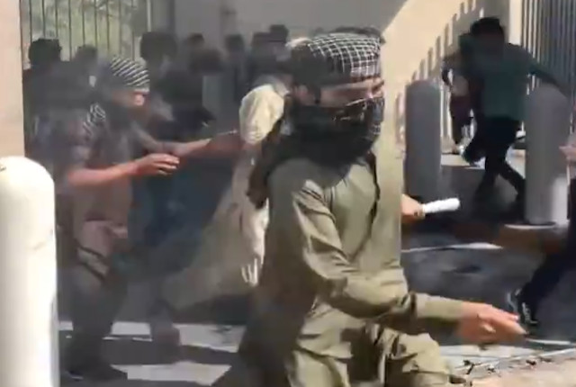 A bloody scene unfolded as militants scattered amid the gunfire. Graphic video posted to social media (watch here) shows several wounded attackers running for their lives as individuals believed to be U.S. Marines opened fire in response. The footage also captures the chaos as the Pakistani militants shouted for help as they carried bodies away from the barrier of the consulate.