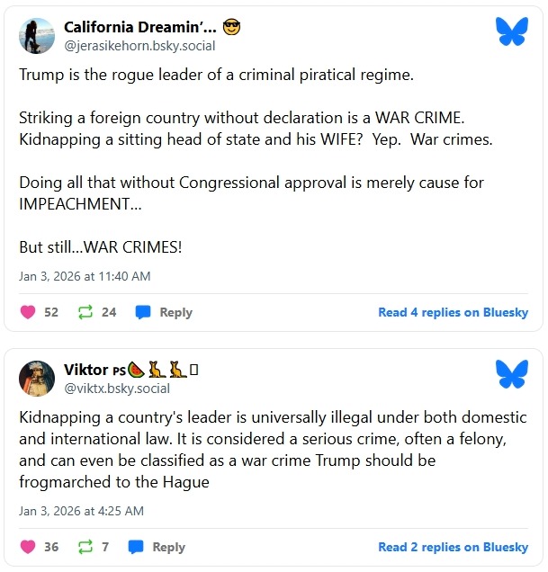 Democrats' & others' reaction to Maduro's capture by Trump: