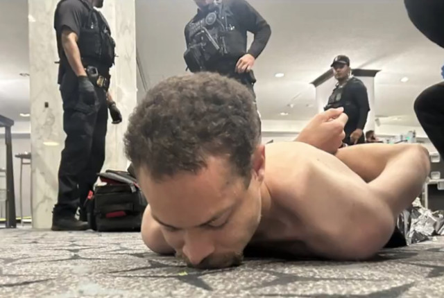 -Video has emerged showing someone on the ground with U.S. Secret Service agents inside the Washington Hilton